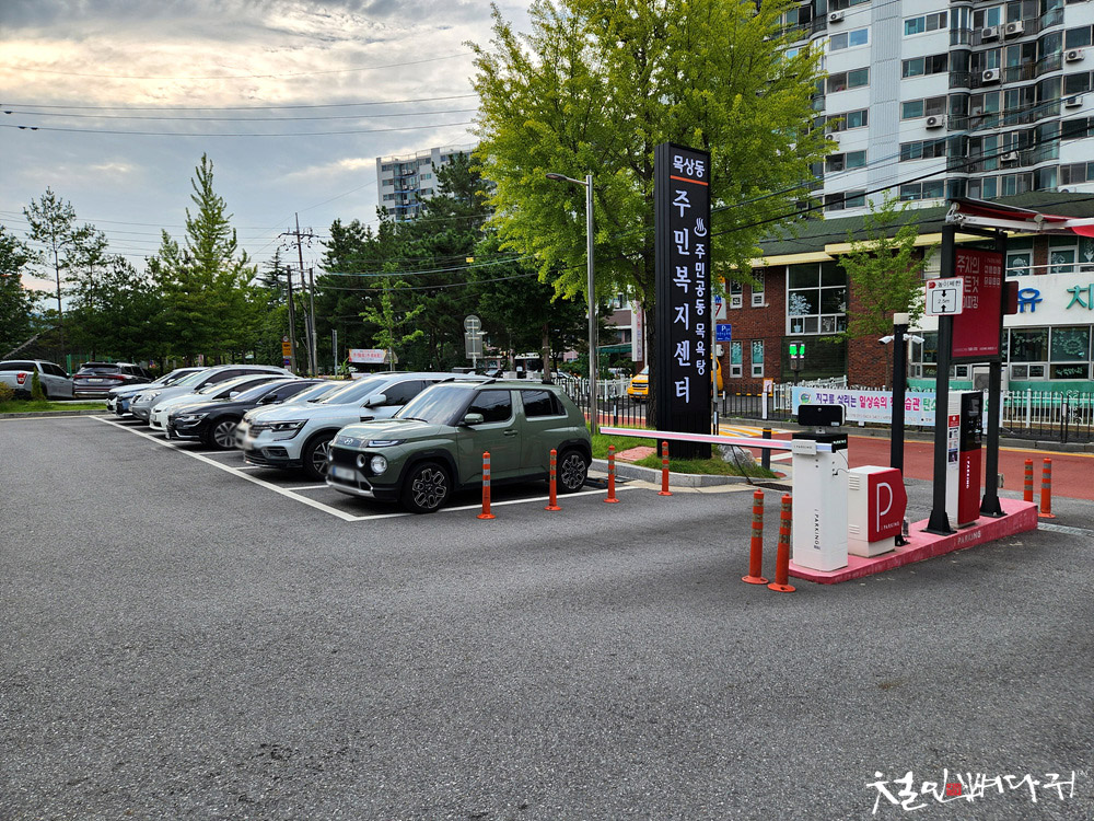 주차장이 잘 되어 있었는데, 목상동주민복지센터 간판이 있습니다.