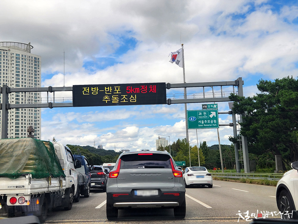 더 걸리는 듯한 정체에 아주 천천히 이동을 했습니다.