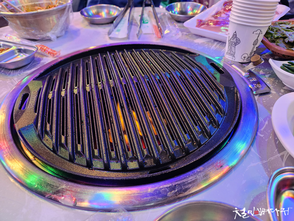테이블에 숯불이 들어가고,