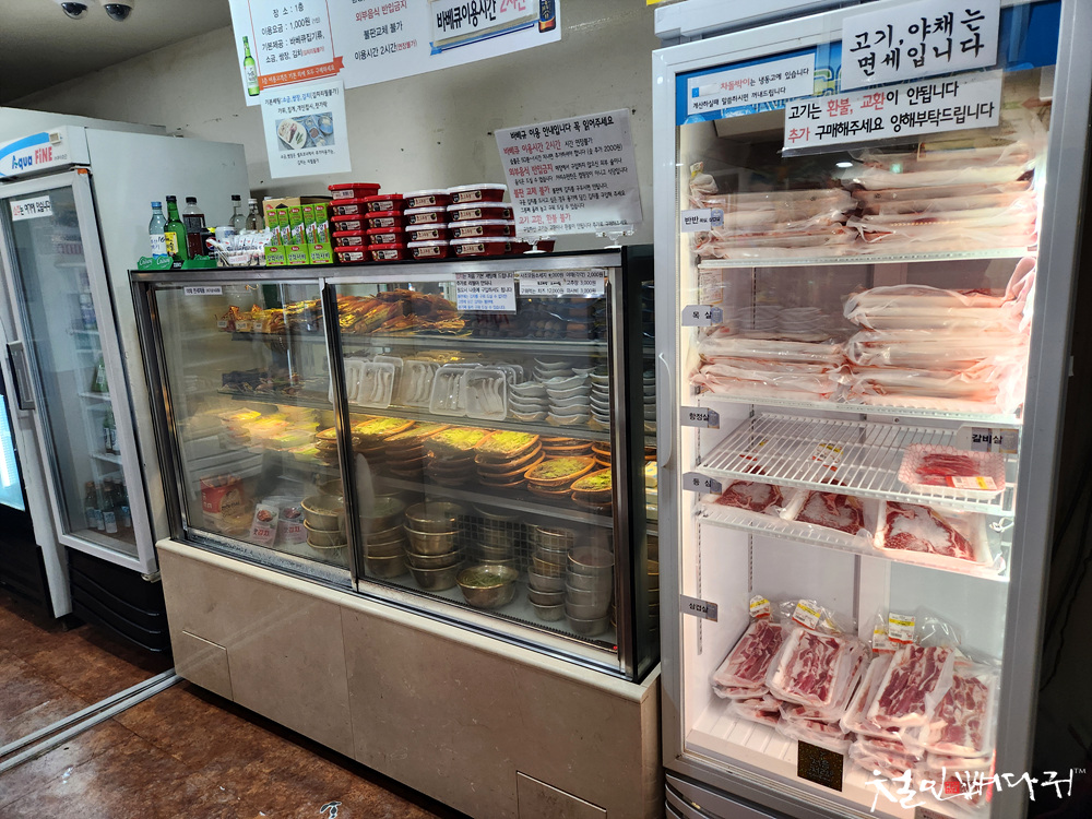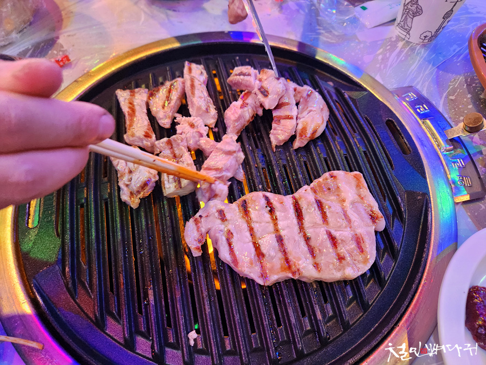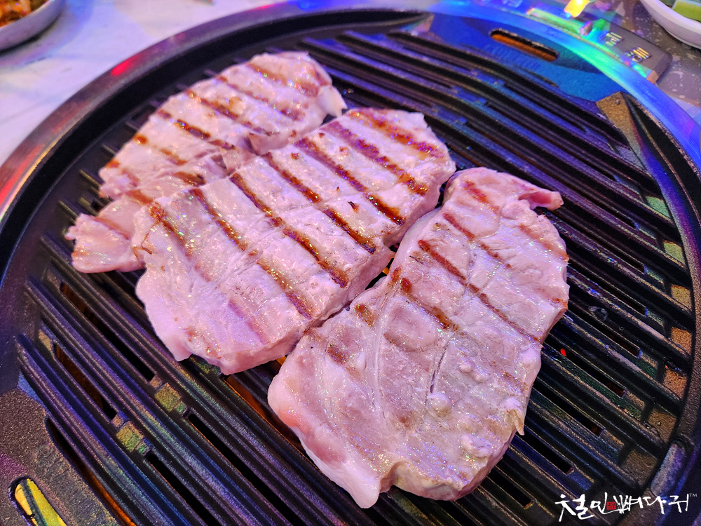 불판이 올려지면 구입한 고기를 굽습니다.
