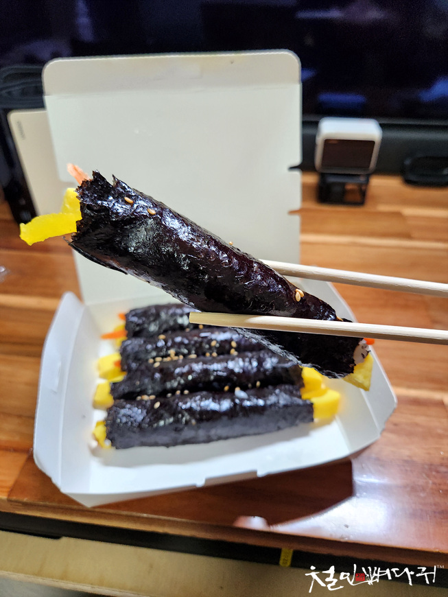 꼬마김밥보다는 큰 크기로 보통의 중간사이즈입니다.