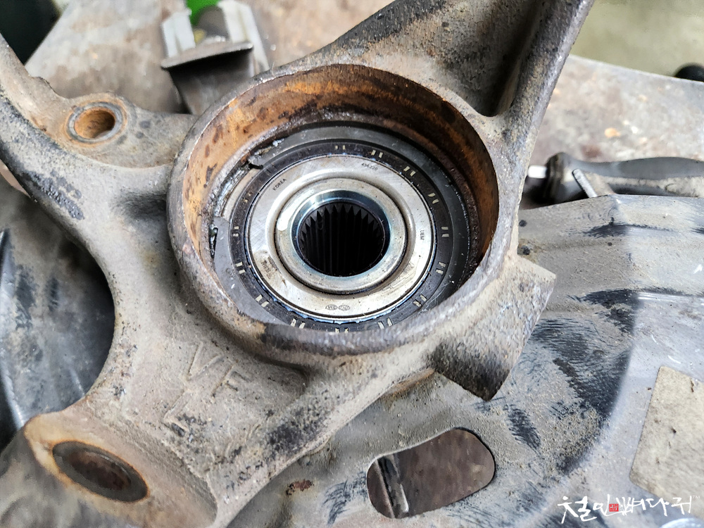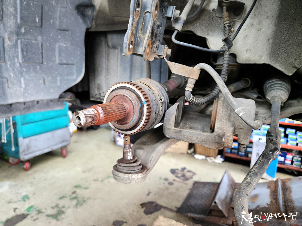 허브베어링의 문제로 맞닿아 있는 허브가 갈려 있습니다.