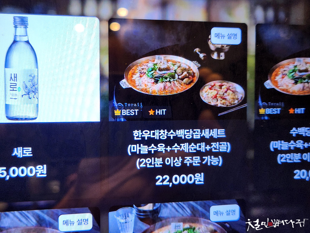 고급스러운 느낌의 순대곱창전골 파는 식당입니다.