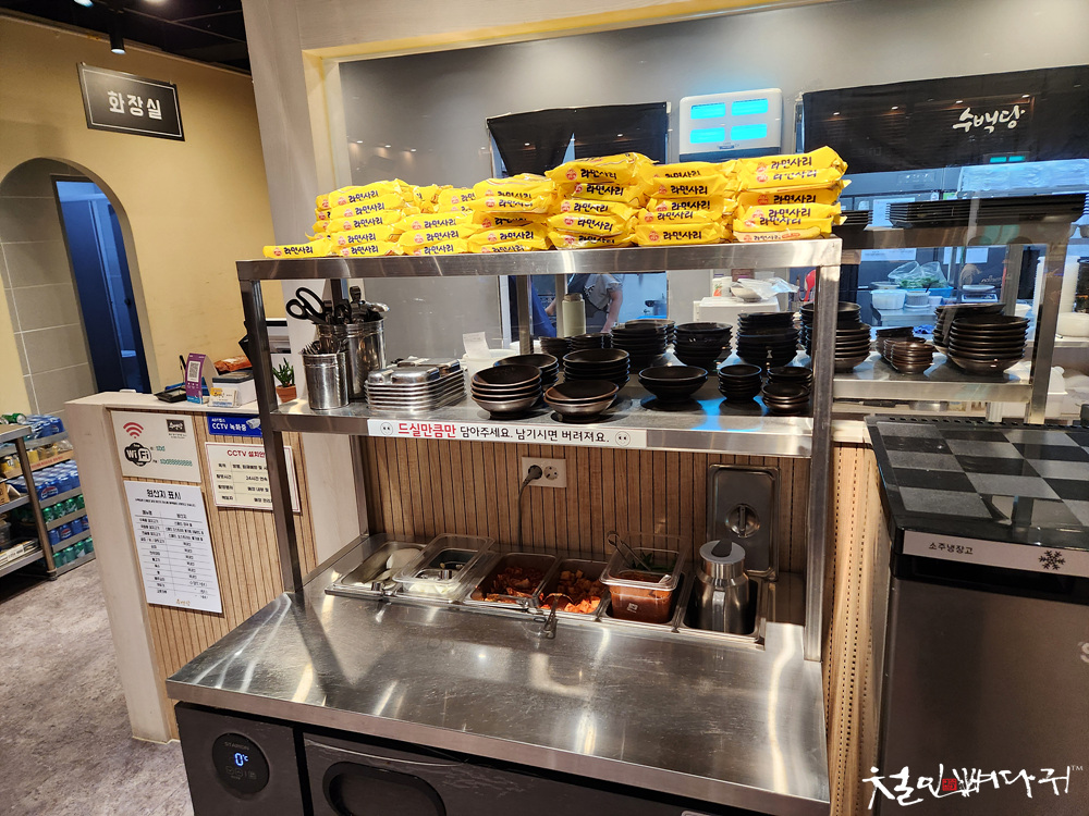 라면사리 무한리필이라 2개 넣고 끓였는데,