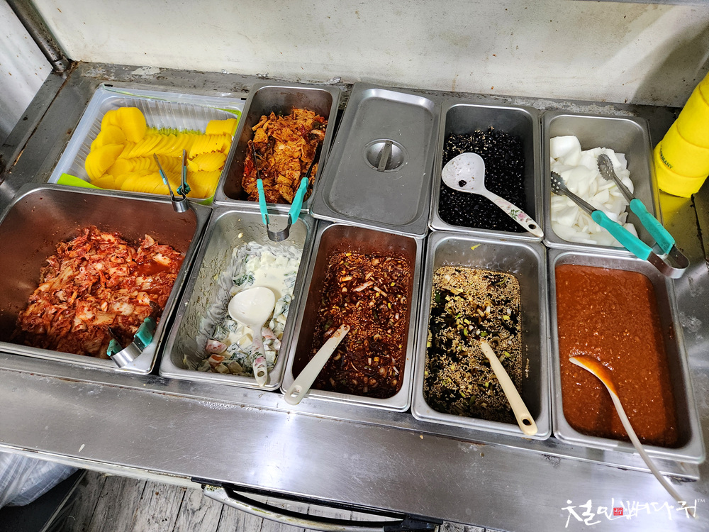 셀프로 여러가지 준비된 반찬을 가져다 먹을 수 있는데,