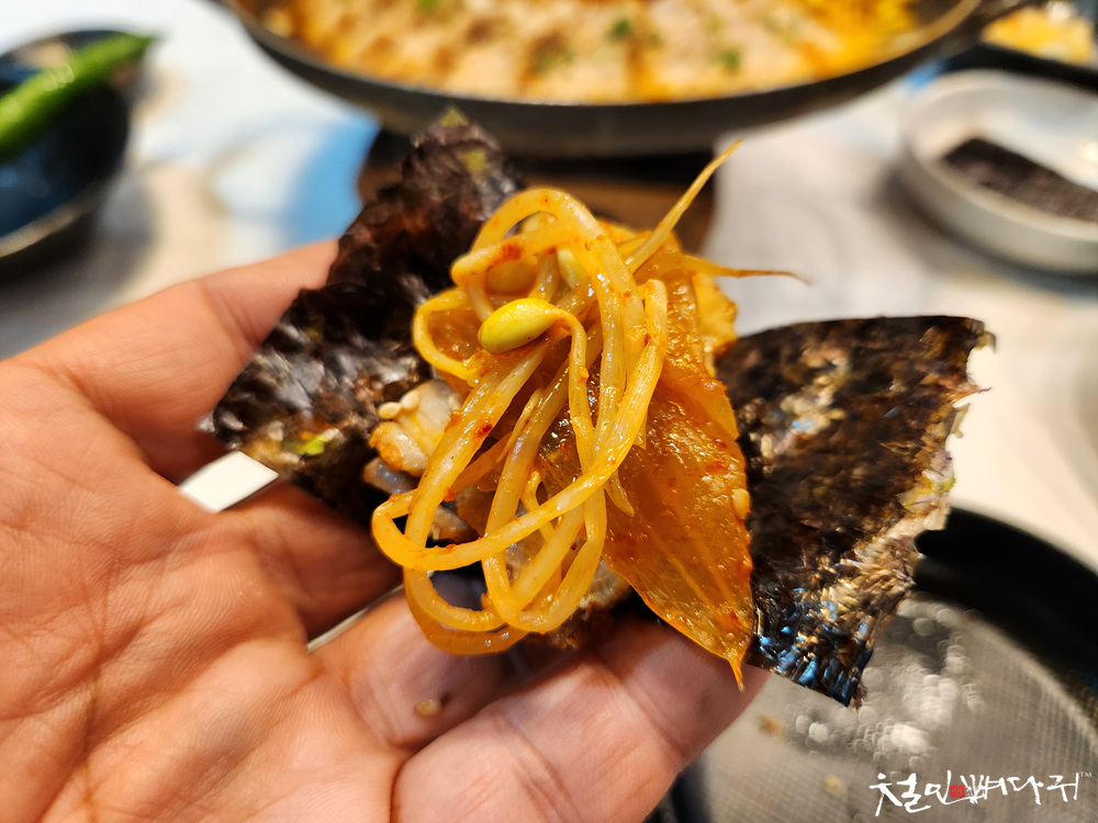 가운데 묵은지가 있습니다.