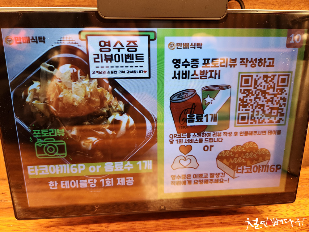 타코야끼나 음료를 리뷰이벤트로 제공받을 수 있는데,
