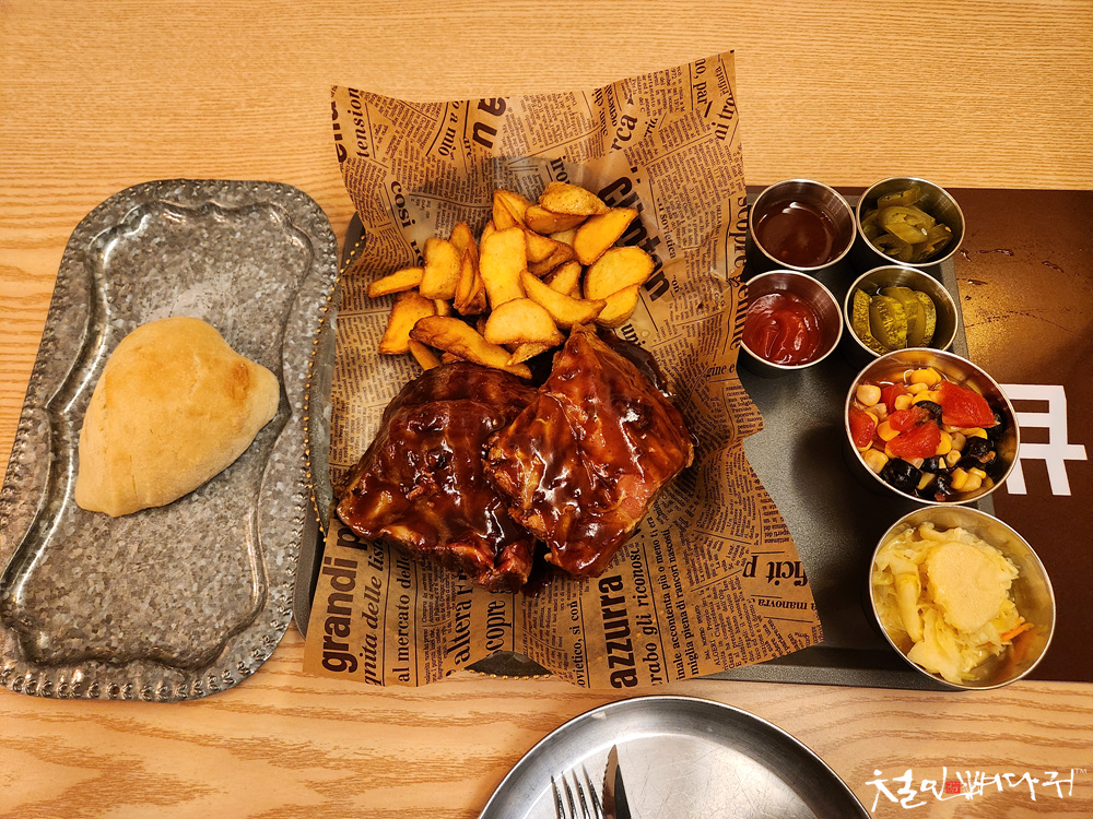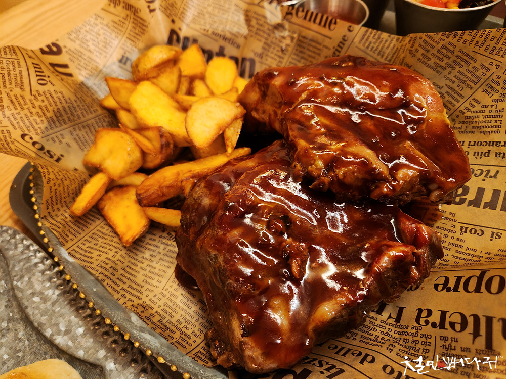 혼자 먹을 수 있는 것 중에 스페어립을 주문합니다.