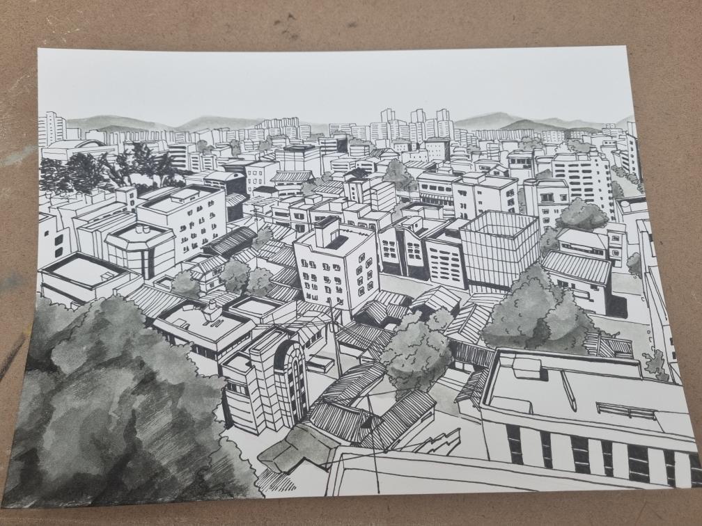 대전 구도심의 모습을 찍었던 사진이 그림이 되었습니다.