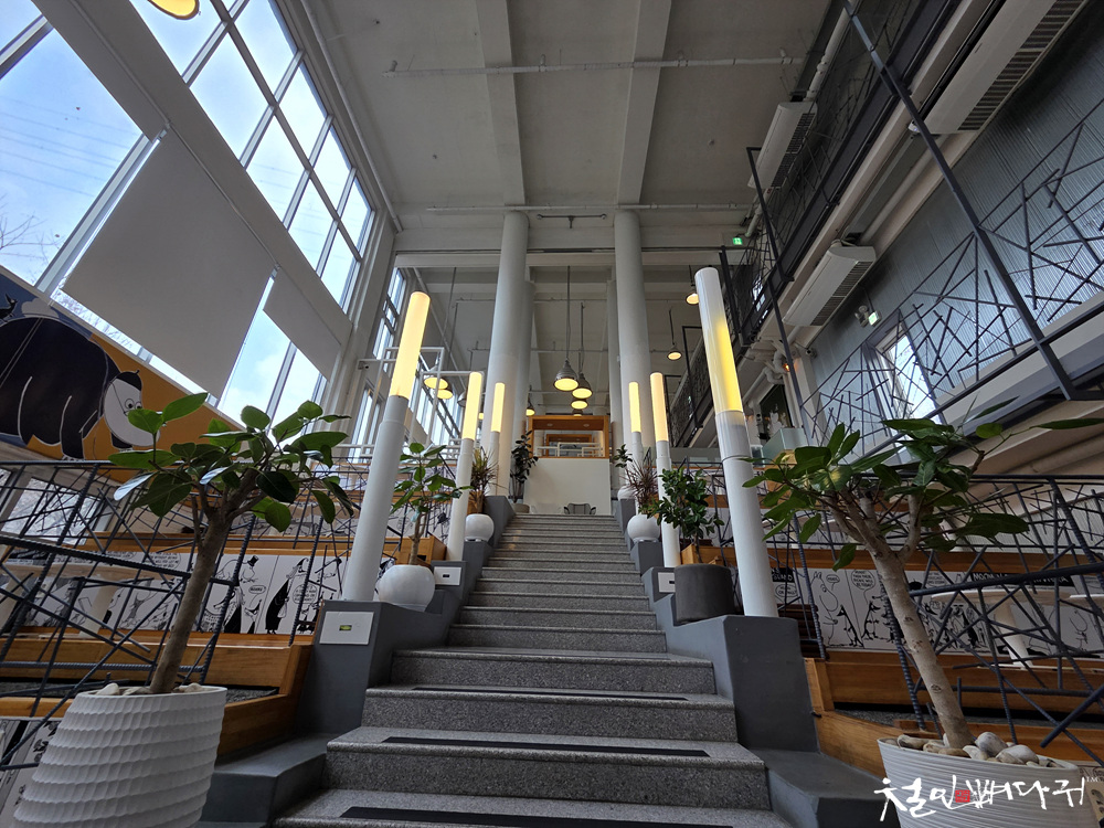 한쪽으로 중앙의 계단을 걸어 올라가면서