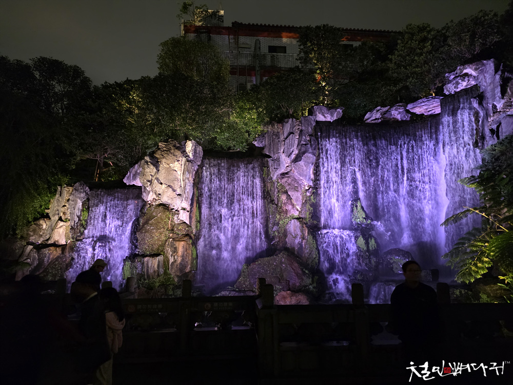 사찰 오른쪽에 인조폭포가 있어서 비가 오지 않는데,