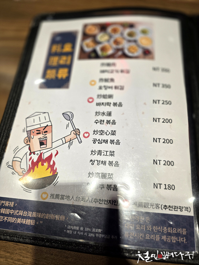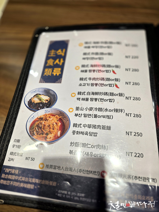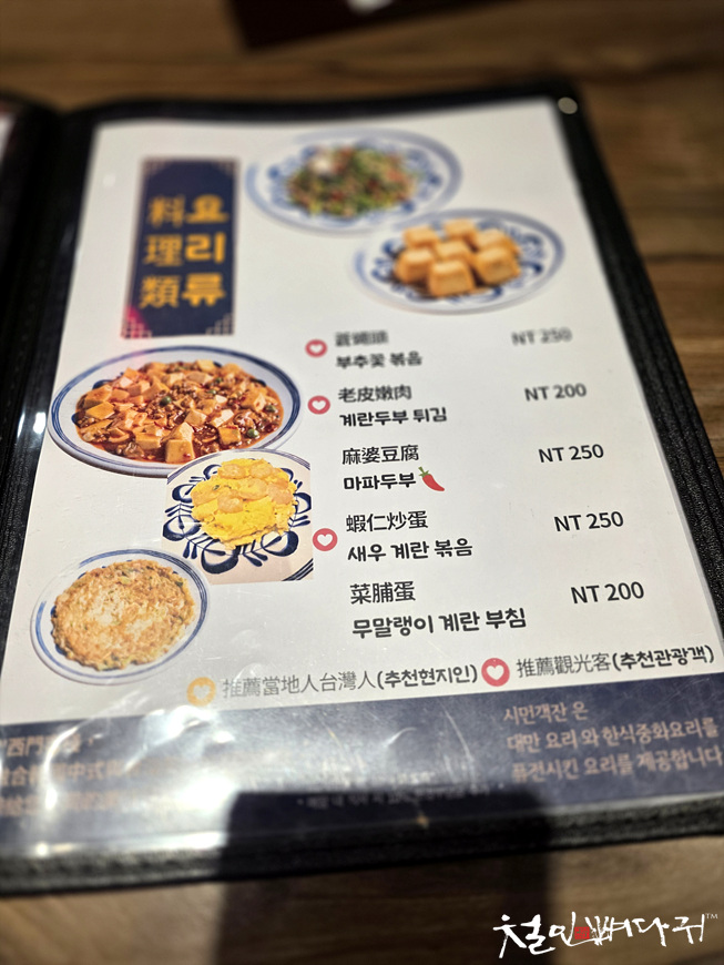 대만과 한국의 중식을 섞어서 만든 음식들도 있고,