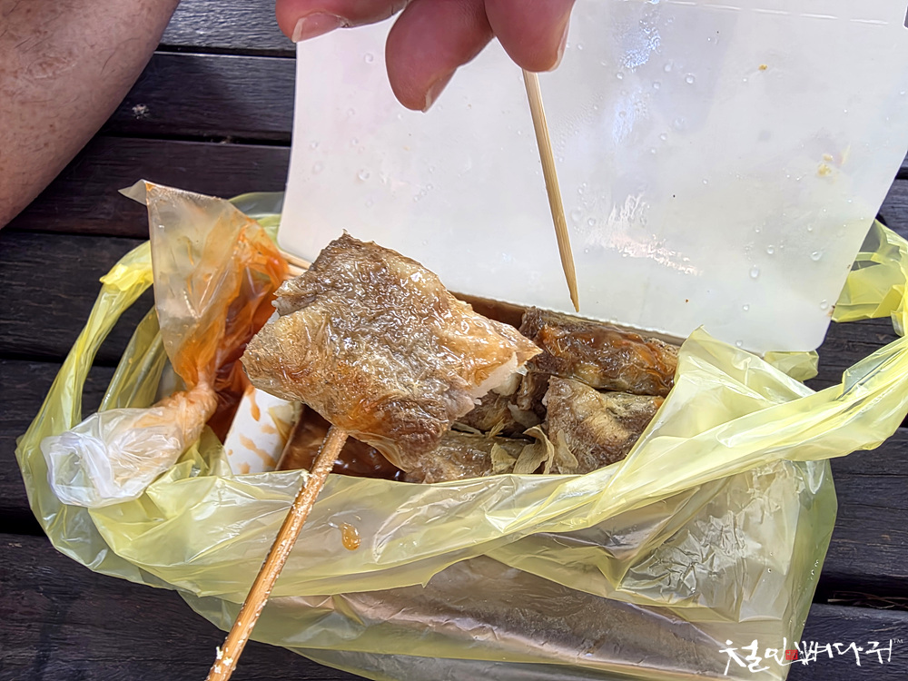 메추리알을 타코야끼 판 같은 불판에 구워서 파는 먹거리입니다.