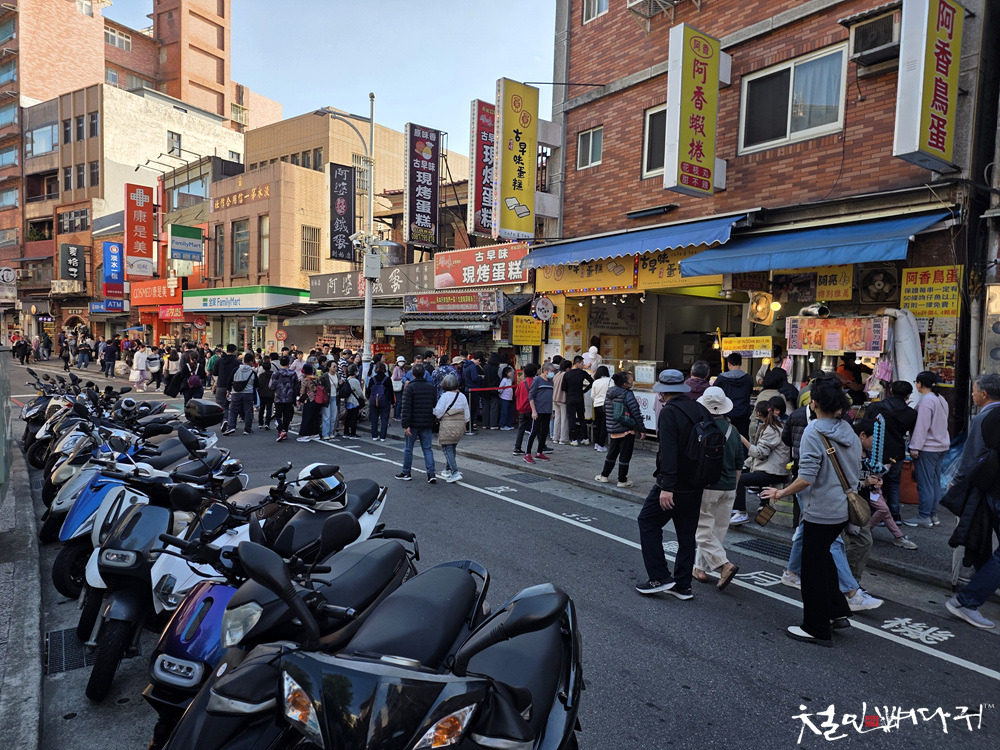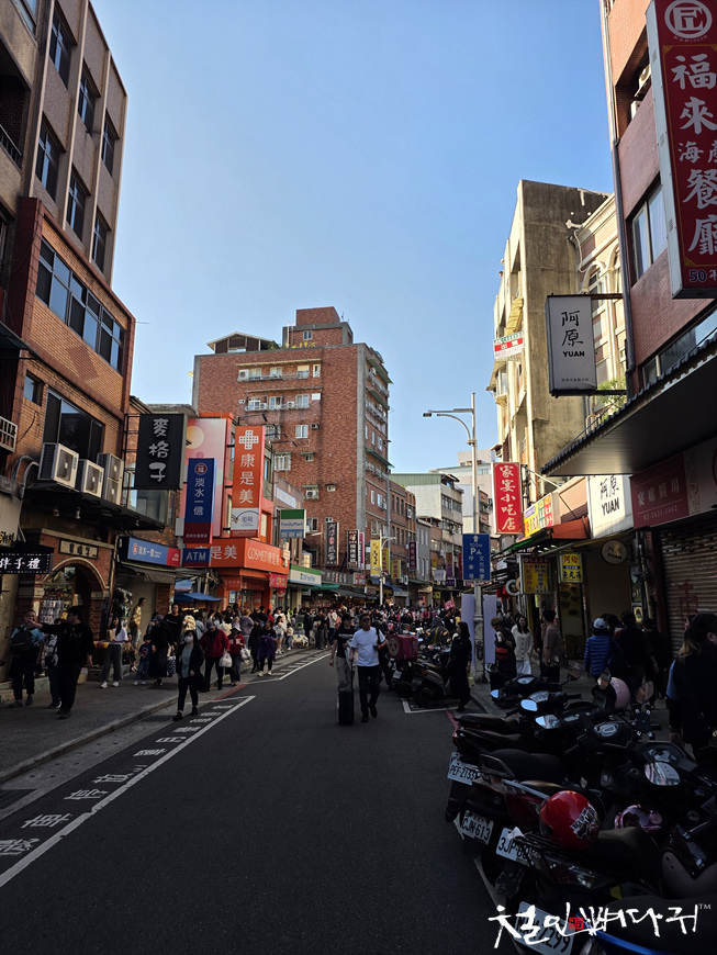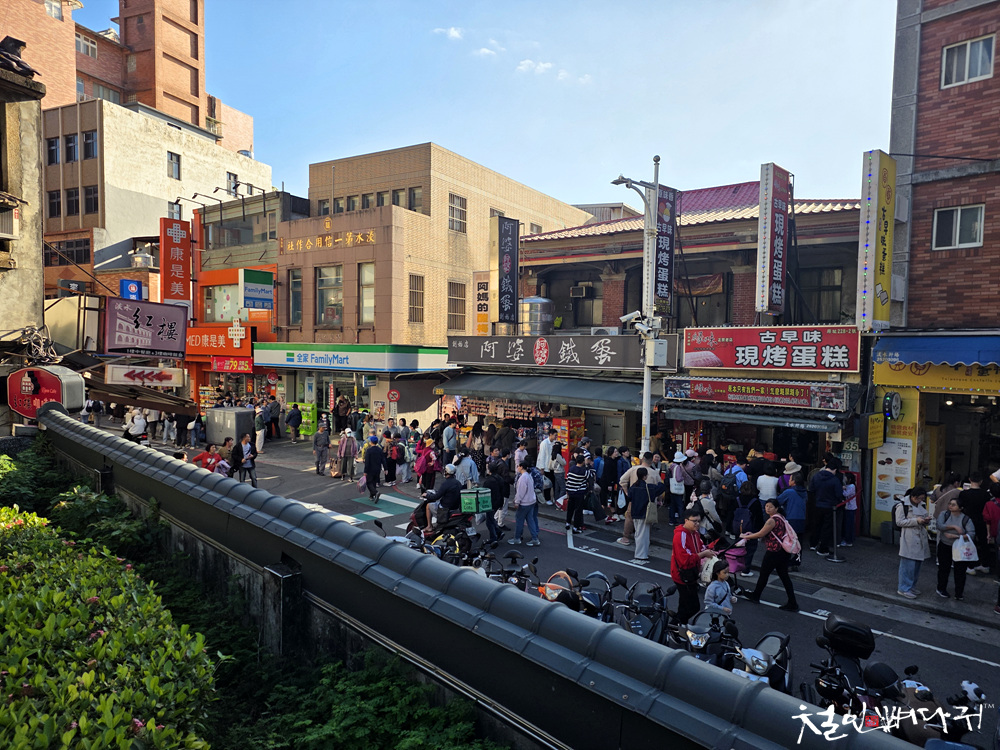 대만의 옛 거리는 관광객들로 가득했습니다.