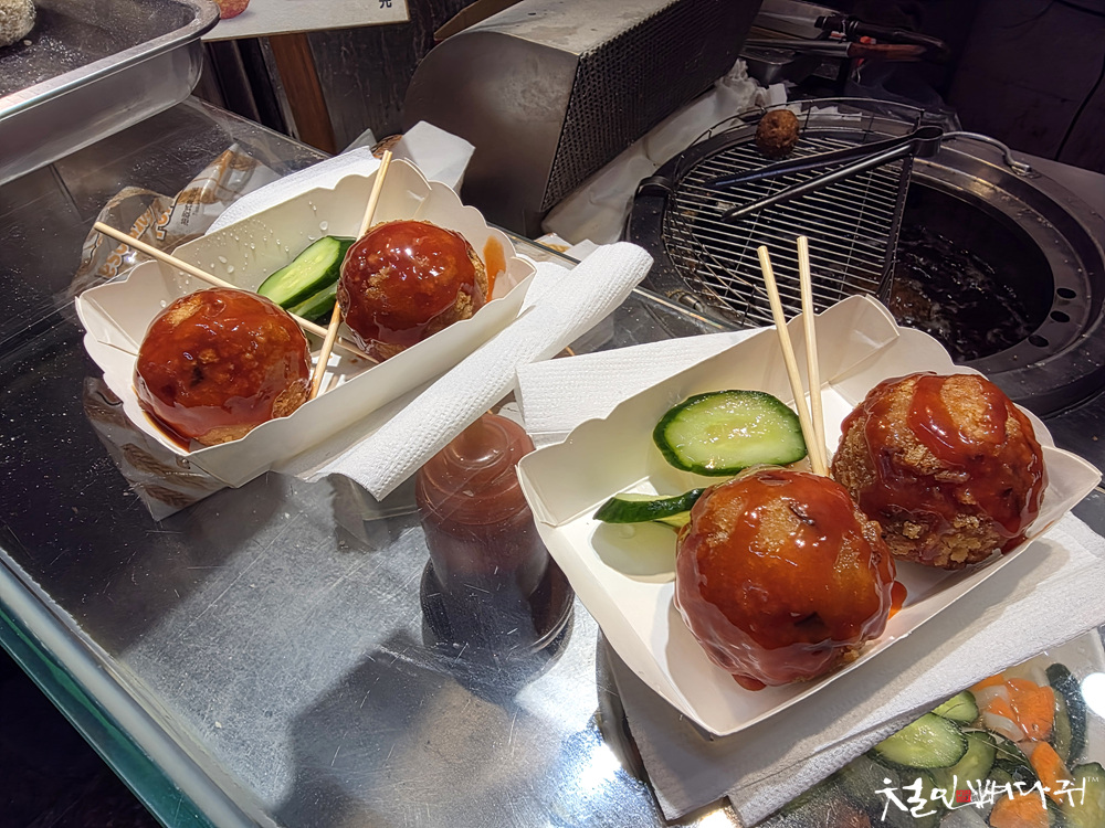 지우펀옛날거리 노점 새우볼튀김