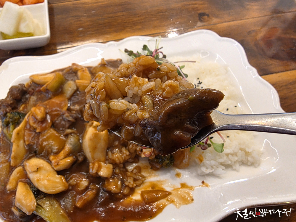 밥보다 소스가 많은 느낌으로 먹습니다.