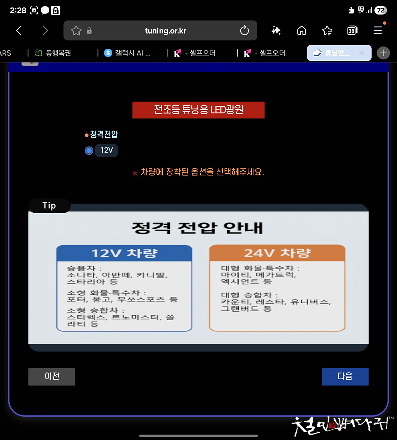 사용하는 차량 전압 12V 선택.