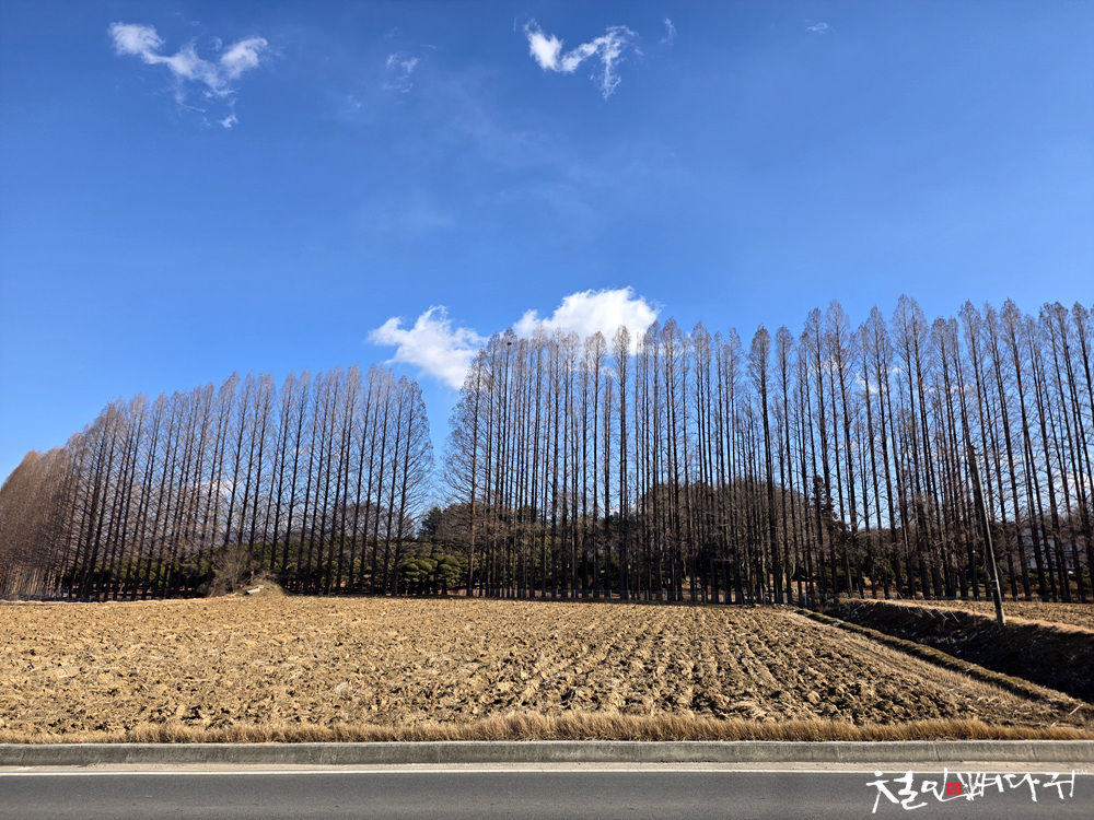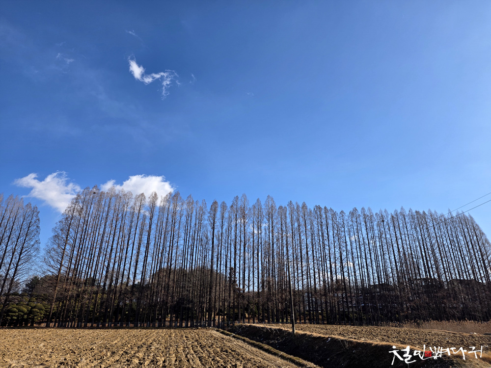 메타세콰이어나무가 병풍처럼 둘러싸인 모습이