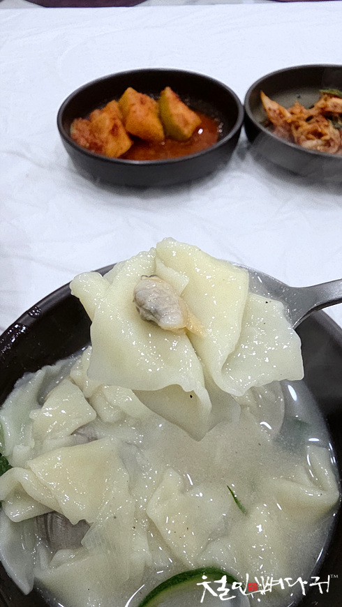 바지락이 들어있는 수제비 혼자서 먹는데, 다 못 먹었습니다.
