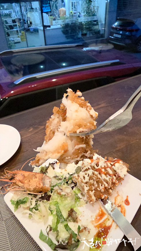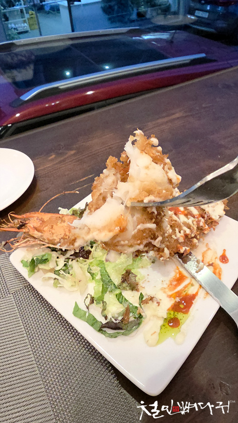 새우 몸도 나이프를 사용해서 잘라서 먹었습니다.