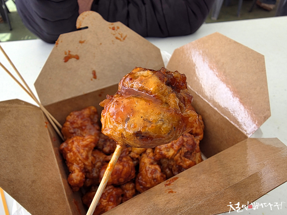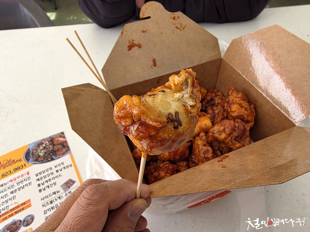 튀겨져서 알밤닭강정이 되었습니다.