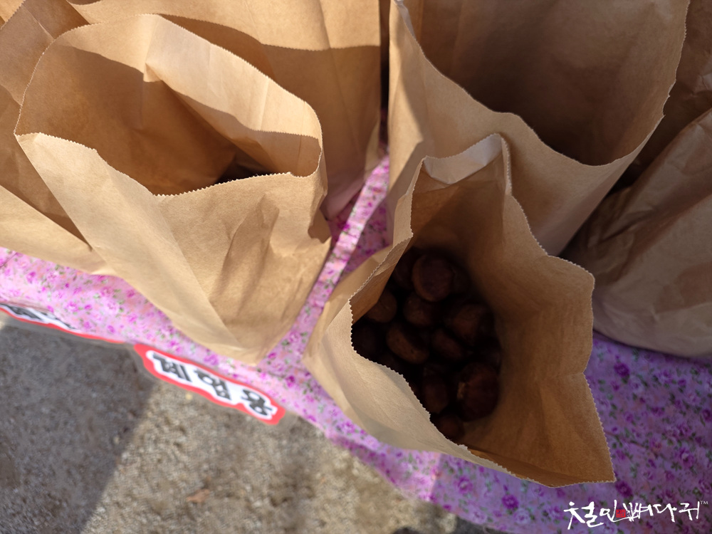 봉투에 담겨있는 밤은 체험용 군밤입니다.