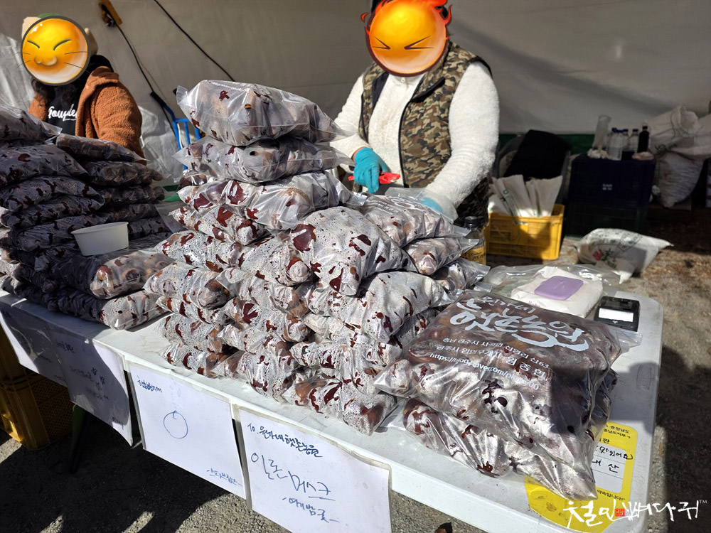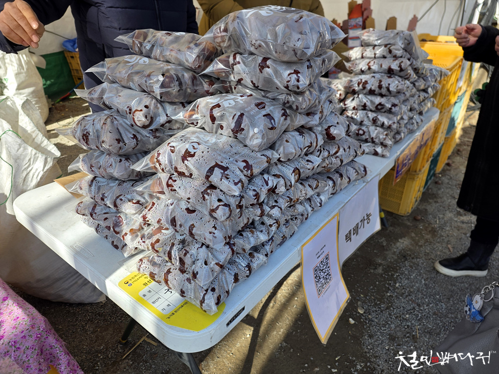 봉지에 쌓여있는 밤은 판매용으로 구매해서