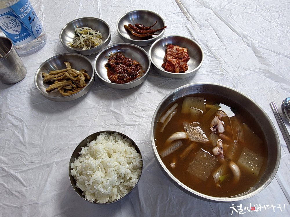반찬 5가지와 밥, 오징어국