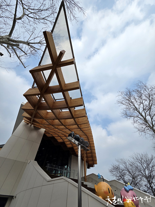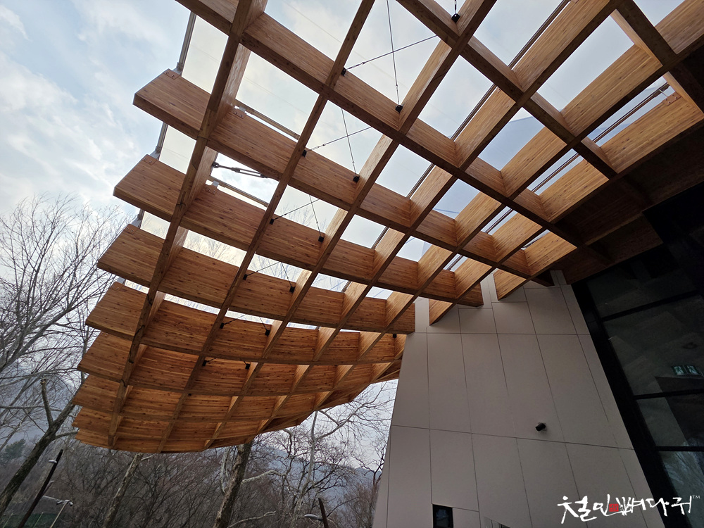 지붕을 받치는 디자인으로 현대미술을 보는 것 같고,