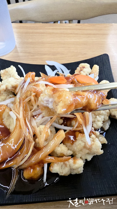 바삭하고, 새콤달콤했고, 고기도 그렇고,
