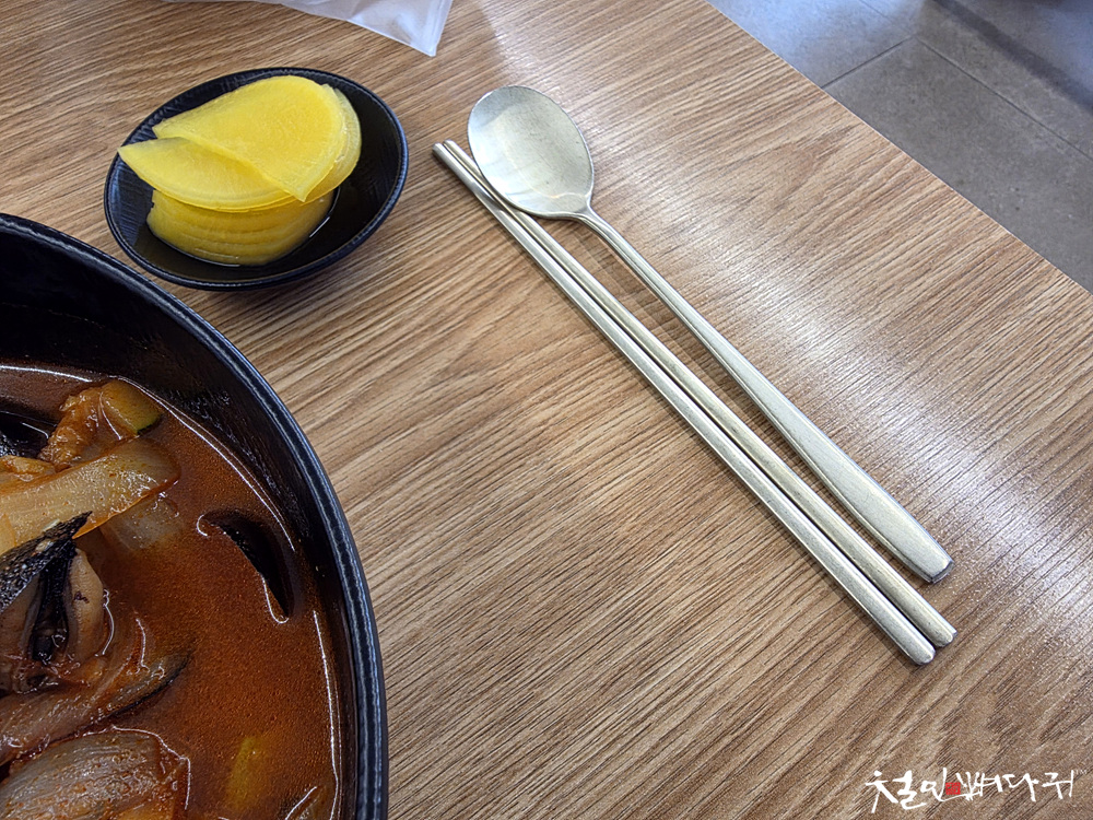 수저, 젓가락은 놋재질 같은 금색이어서 깔끔했습니다.