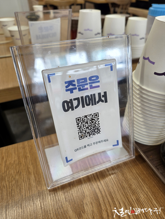 테이블에 있는 QR코드를 찍어서 음식 선택 후 주문하고,