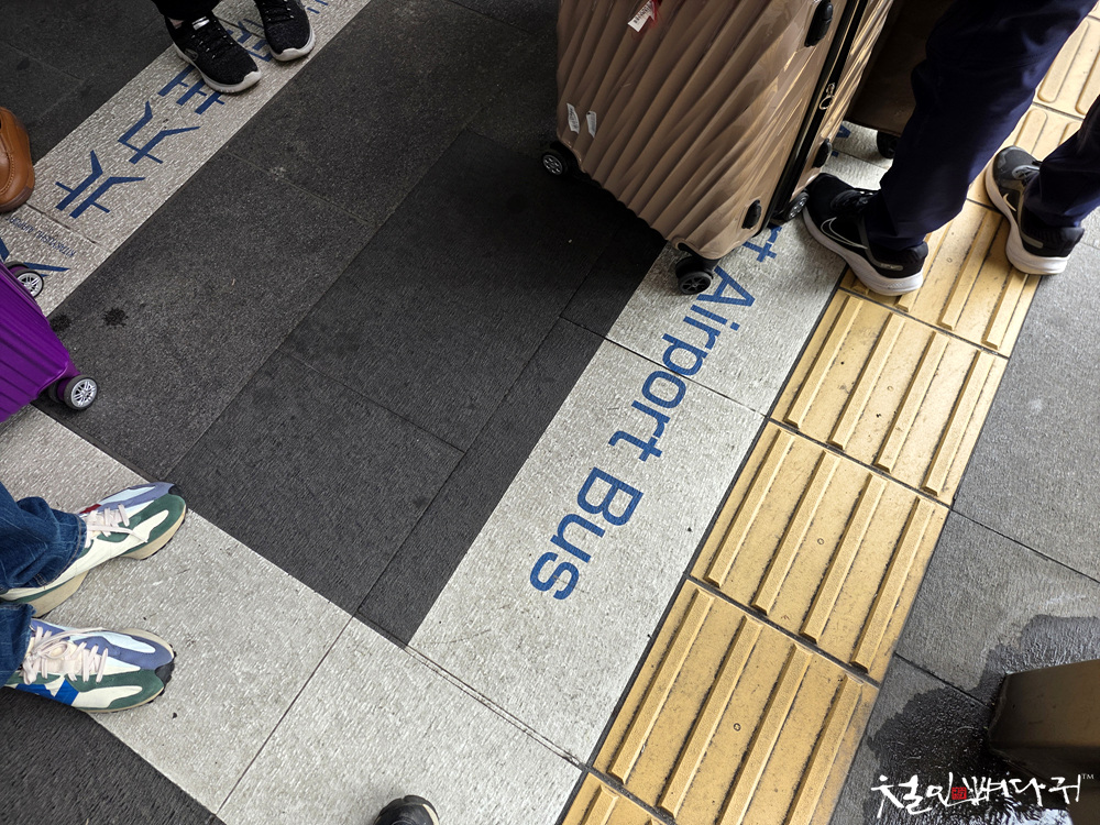 바닥의 하얀색 선에 공항버스(Airport Bus) 적혀있는 곳에