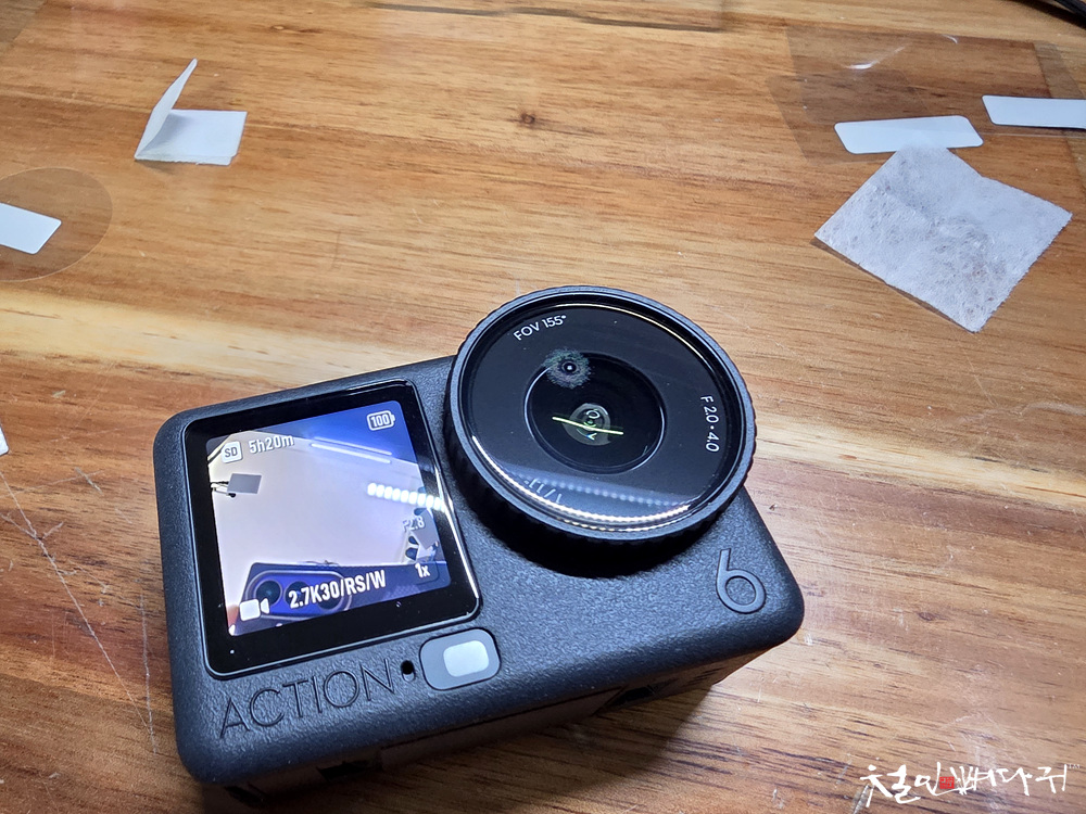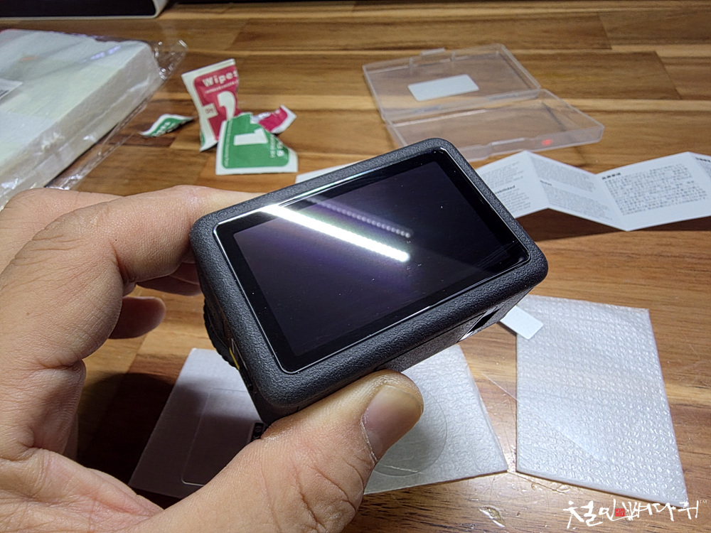 액션캠에 보호필름을 이전 것에서는 안 붙이고