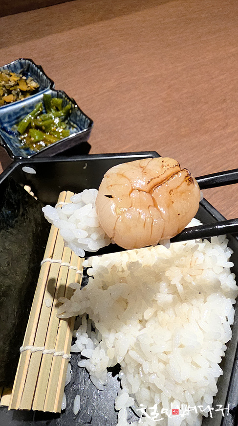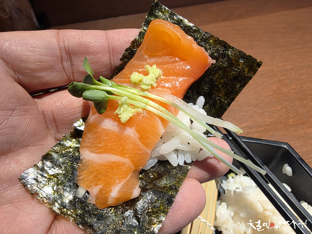 밥도 양념이 되어 있는 것으로 김에 싸서