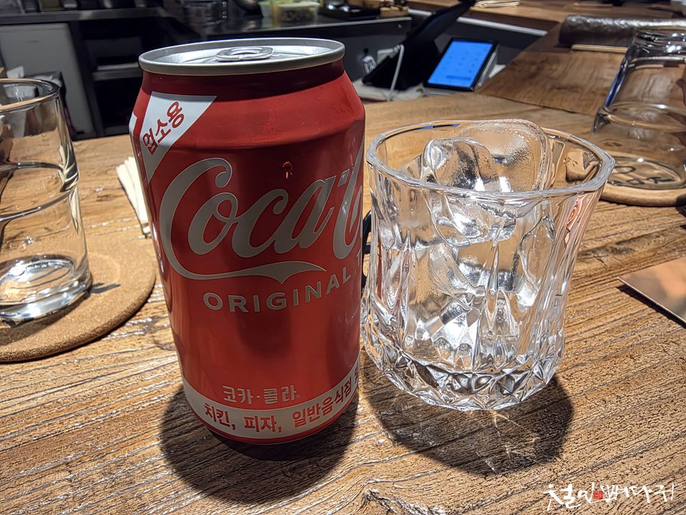 시원하게 얼음컴에 콜라 따라 마셔줍니다.