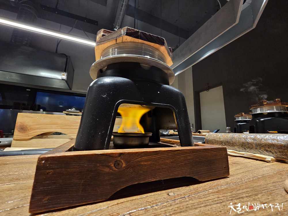 손님 앞에서 바로 밥을 짓기 시작하는데,