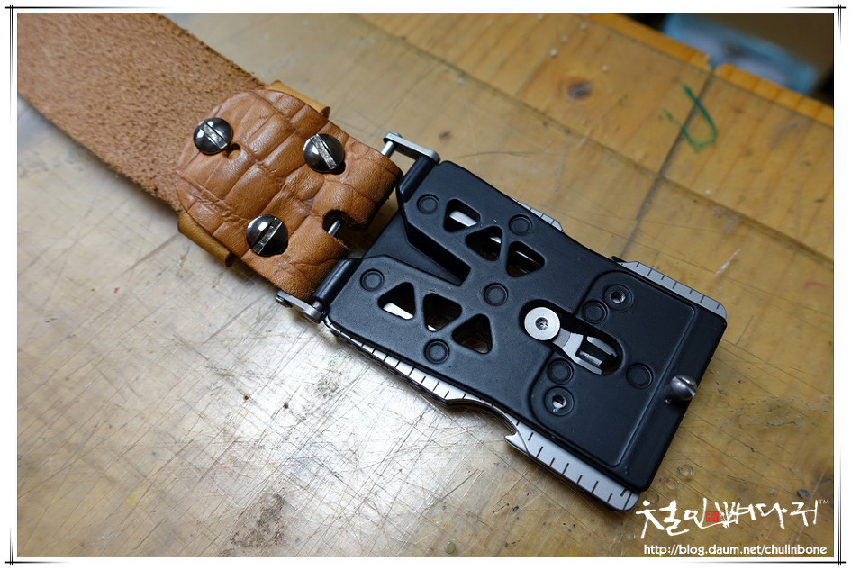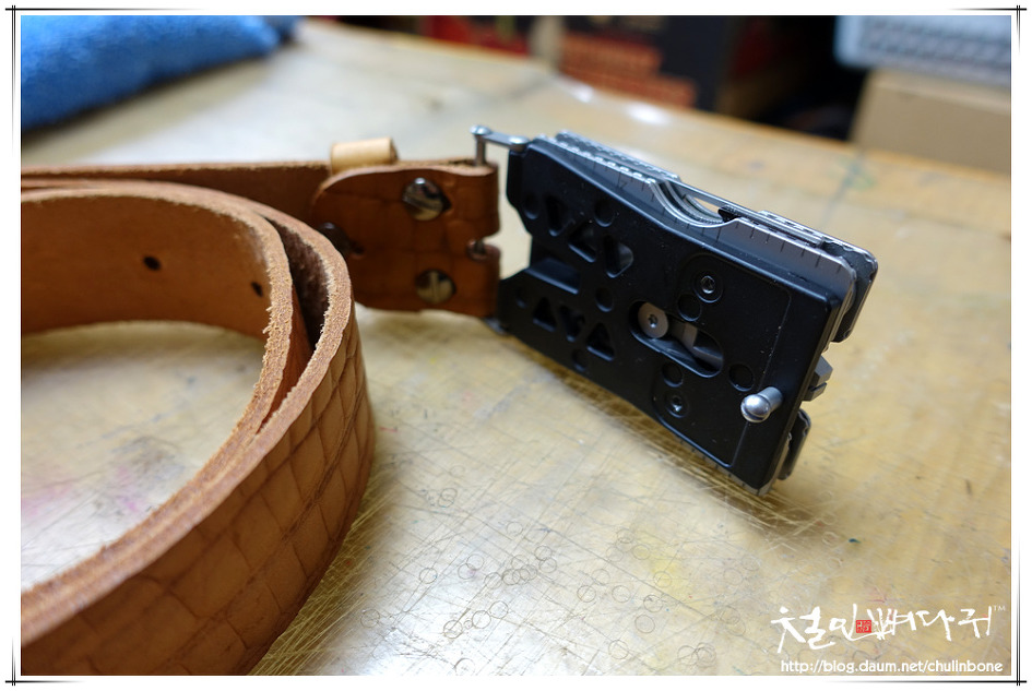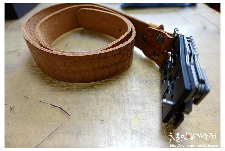 잘 알고 지내는 가죽공방 형님에게 가죽밸트 부분을 의뢰했습니다.