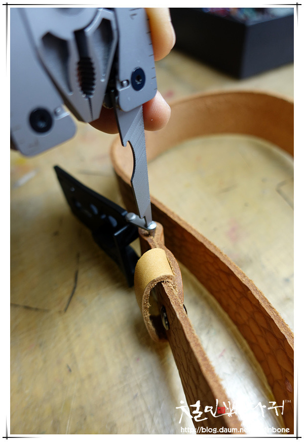 그런데, 가죽 밸트 끝이 고정이 되지 않아, 추가 작업을 했습니다.