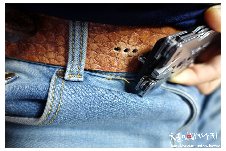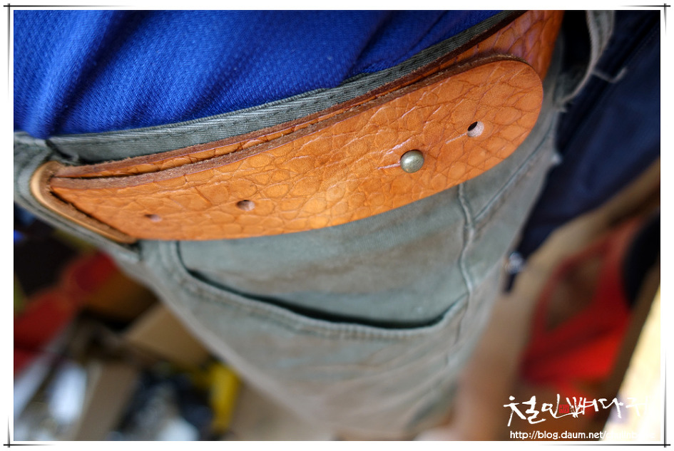 가죽의 구멍은 뱃살의 가감에 따라 조금씩 구멍을 뚫어서 옮겨가며 사용했는데,