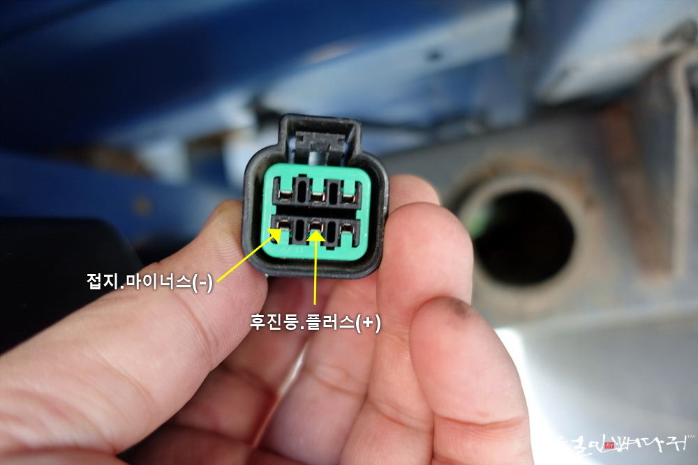 테스터기로 후진관련 플러스(+) 배선과 공통선인 접지용 마이너스(-)를 찾았습니다.