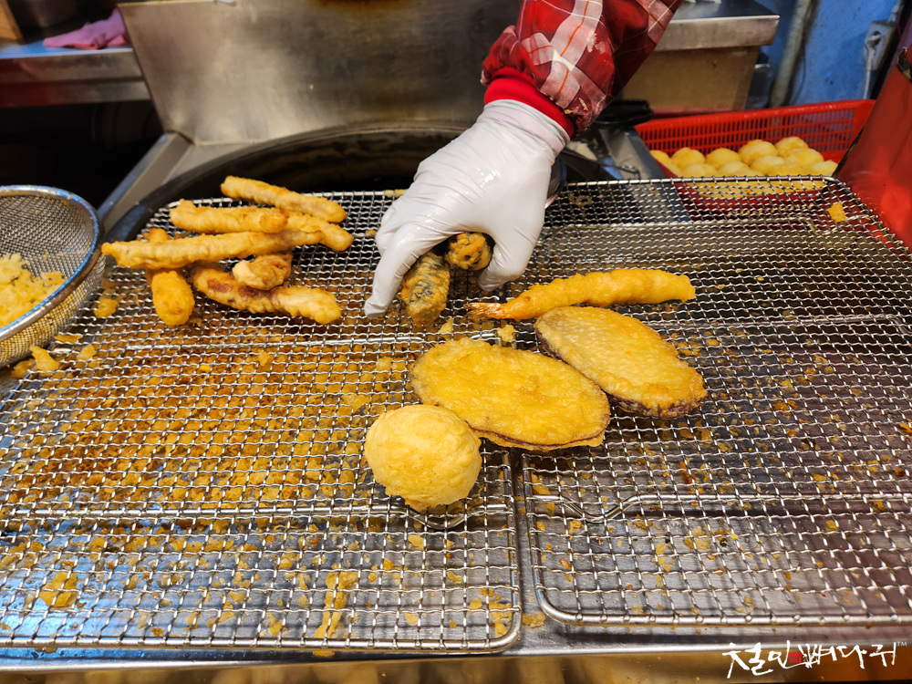 가마솥에 튀기는 튀김도 수시로 만들어냅니다.
