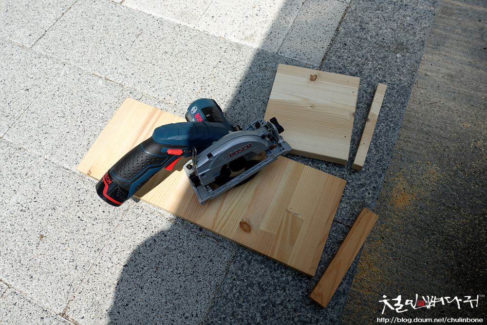 원형톱을 꺼내사 바로 필요한 길이로 잘랐습니다.