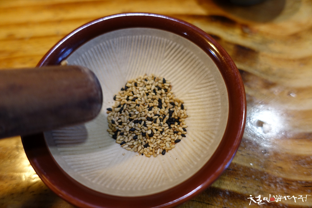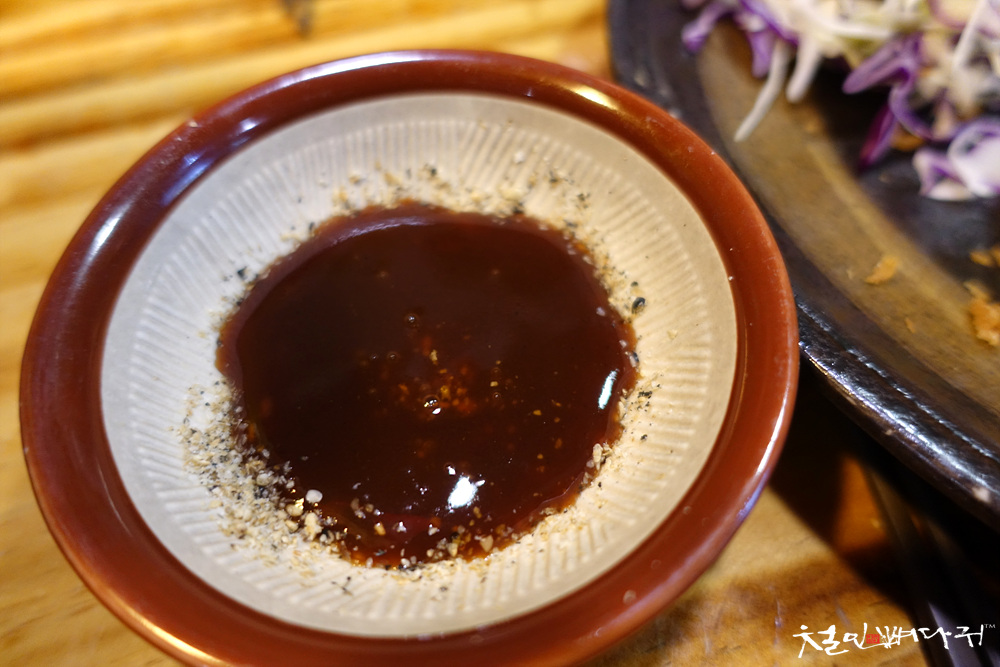 깨를 갈아서 소스를 부어 돈가스 소스를 약간의 수고로 만들어 먹는 것도 여기 방식인가 보네요.