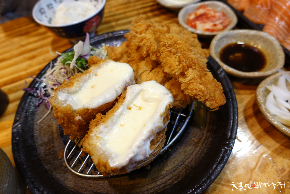 생연어초밥, 치즈모듬가츠.