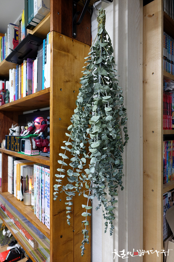 전시회 내내 전시장 여기저기 걸려있던 유칼립투스 말린 것도 한 다발받아왔습니다.