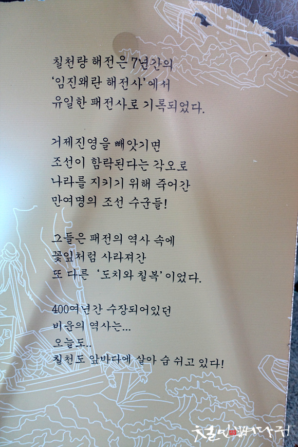 임진왜란 7년 동안 처음이자 마지막으로 패배를 했던 곳이 이곳 칠천량입니다.
