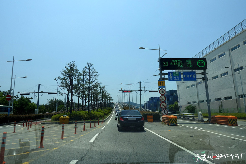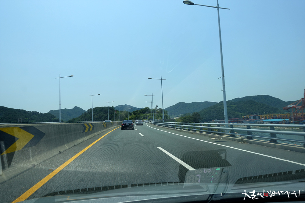 해저터널을 지나 거가대교를 넘고 있습니다.