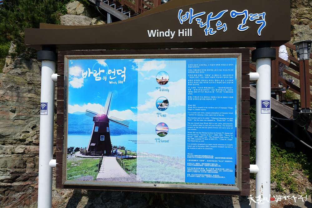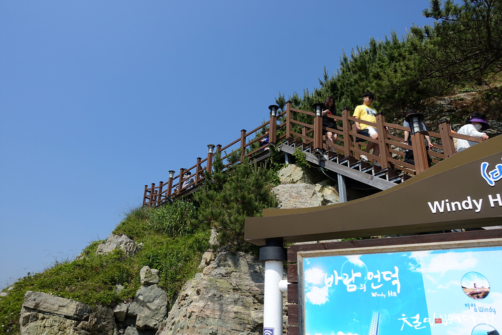 주차장에서 바람의 언덕 설명을 보고, 바로 계단을 걸어 올라갔습니다.