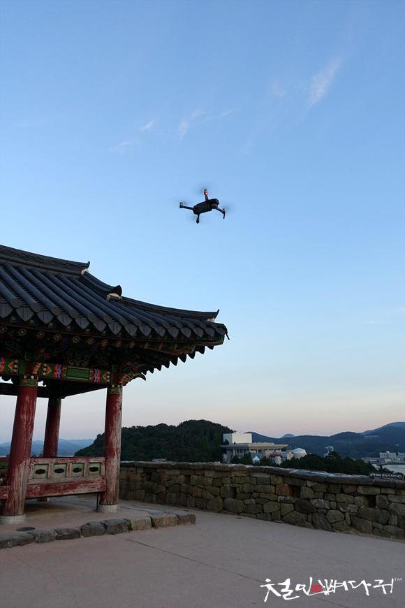 동피랑 정상에서 드론을 날려서 주변 촬영을 했습니다.
